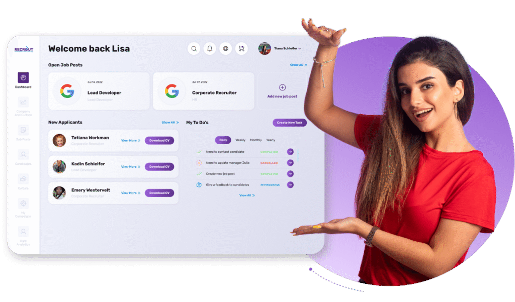 Laat de kans niet aan je voorbijgaan om je recruitmentproces te vereenvoudigen en top kandidaten te vinden met Recrout. Meld je aan voor een gratis proefperiode en zie vandaag nog het verschil.
